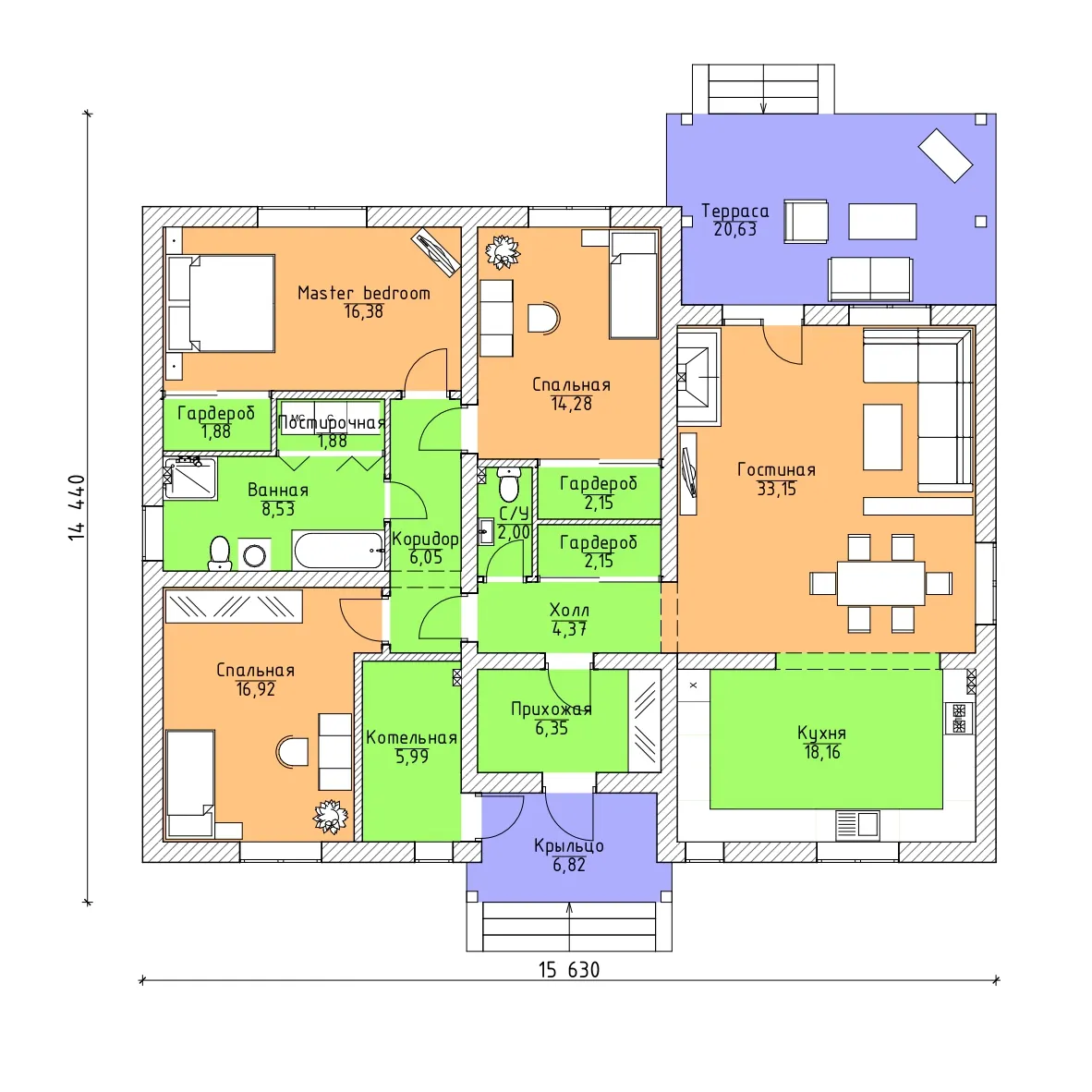 Дом по проекту «ЗС 68-23» - Золотое Сечение