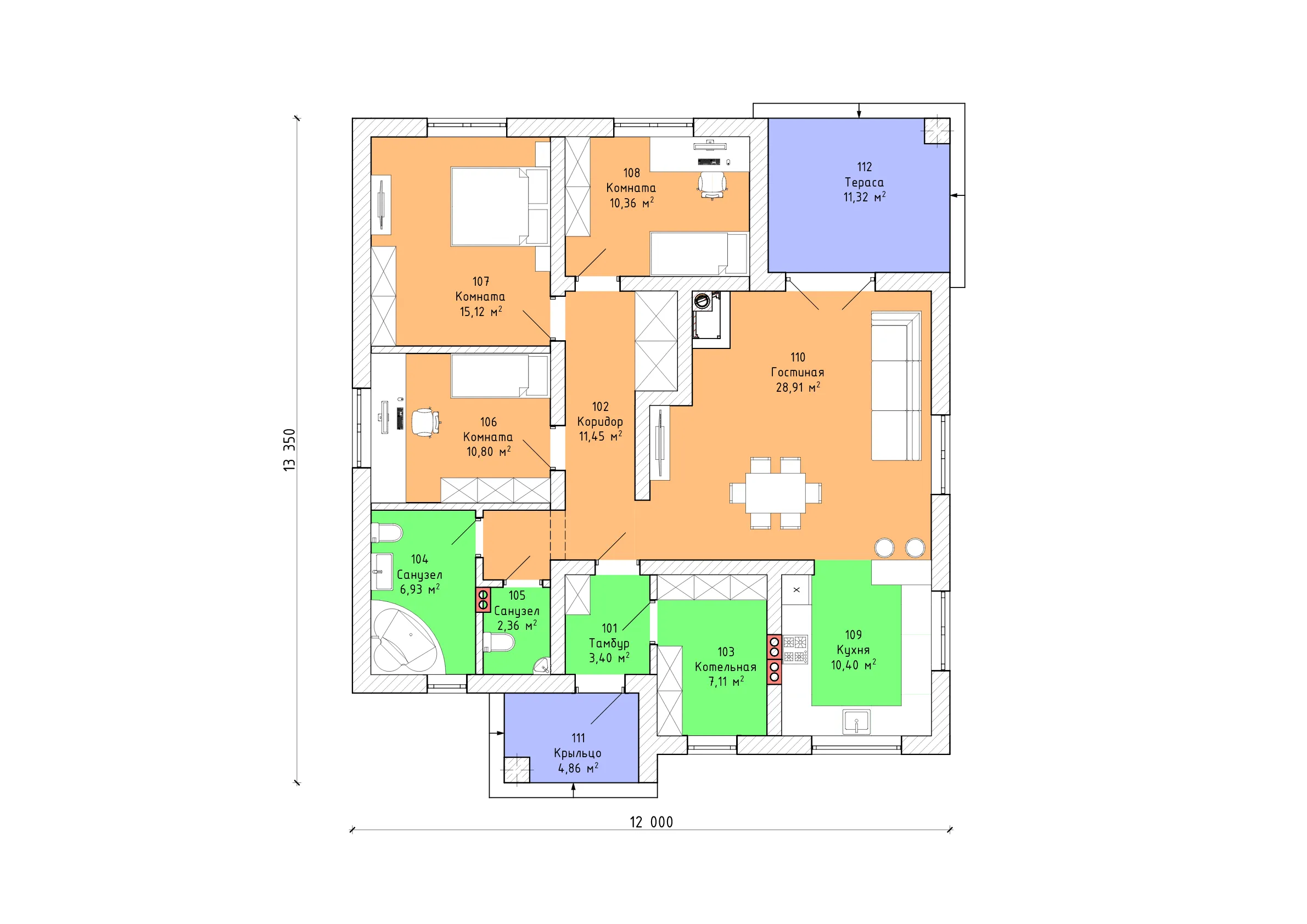 Проект одноэтажного каркасного дома "Лада"