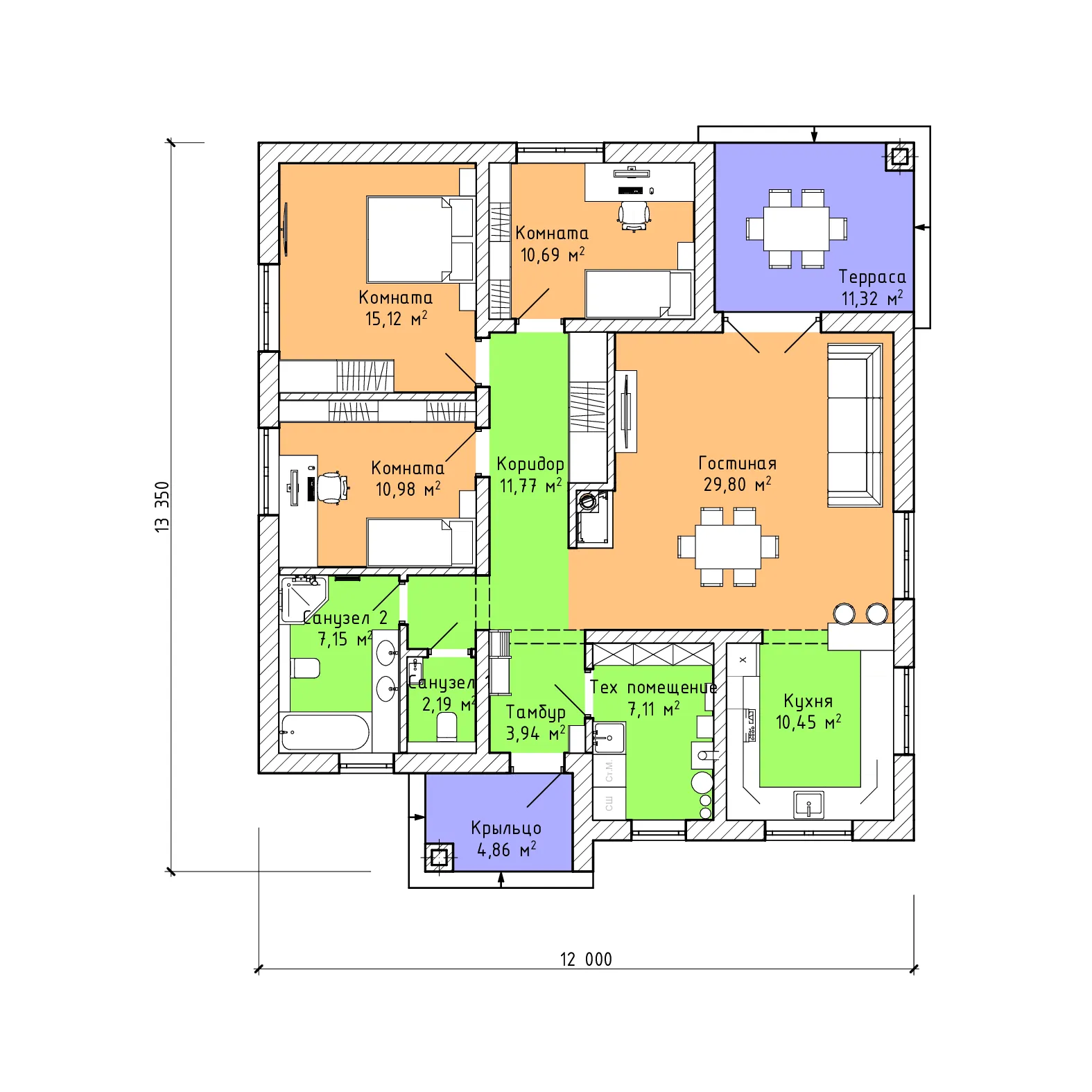 Проект одноэтажного дома "Булава 2" из бруса