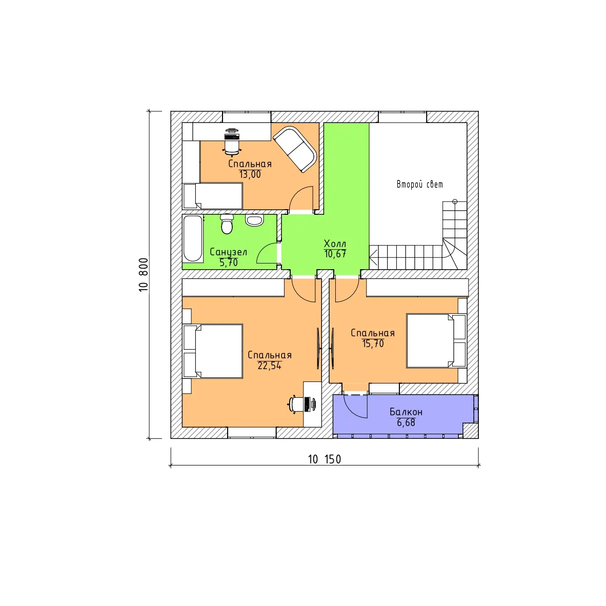 4 спальн. · 2 этаж