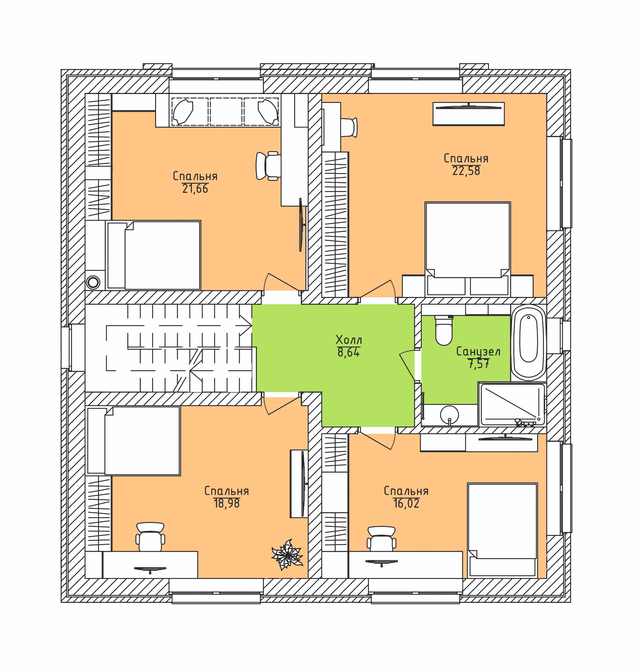 6 спальн. · 2 этаж