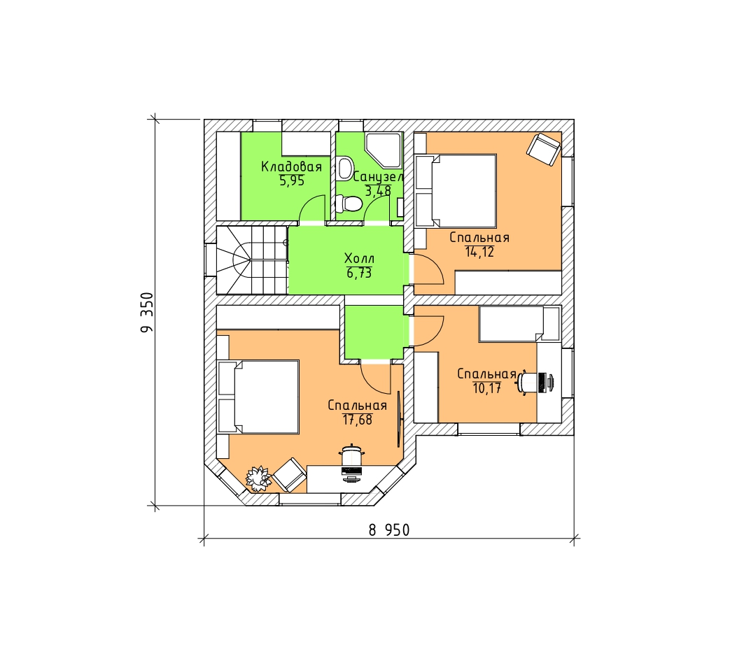 3 спальн. · 2 этаж