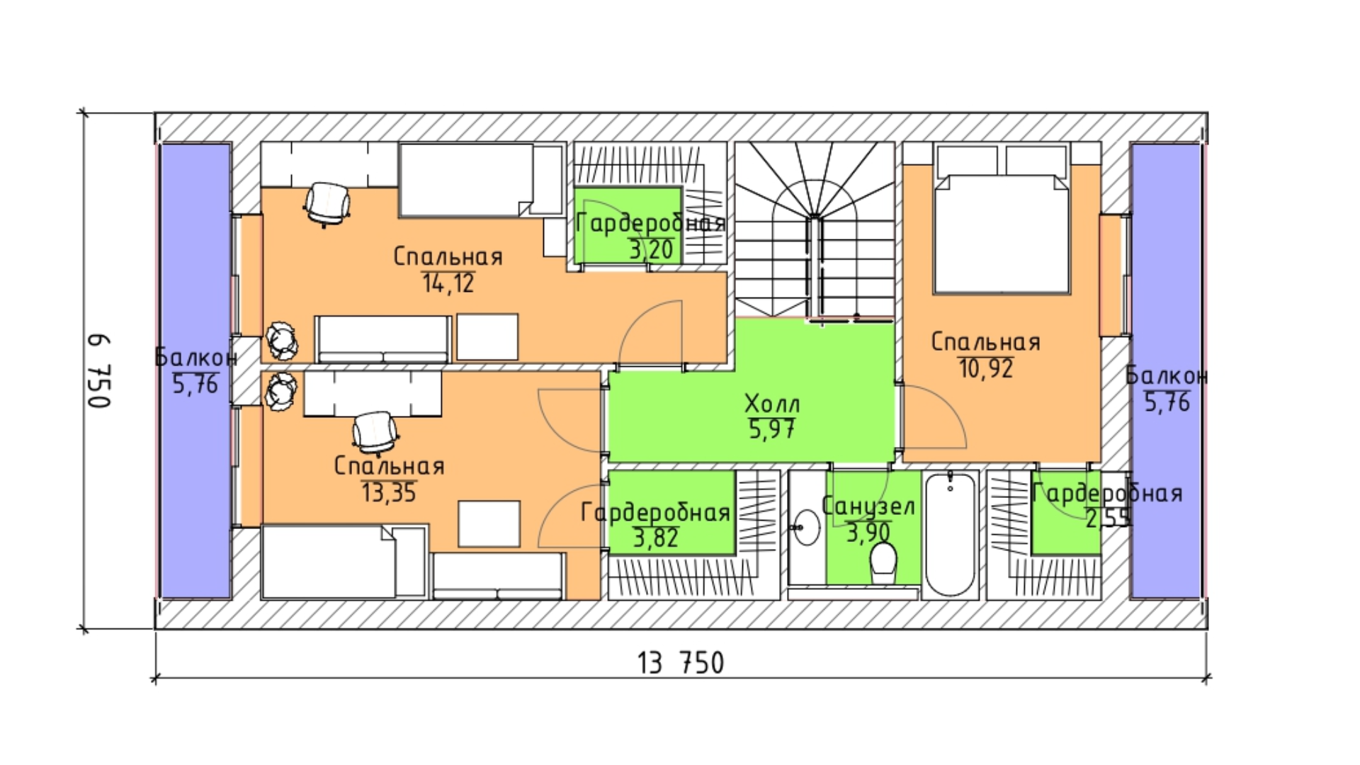 4 спальн. · 2 санузл.