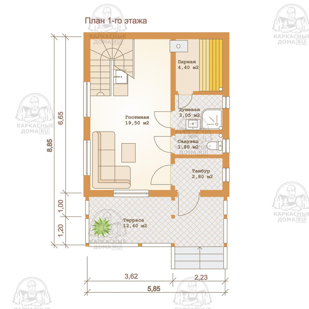 Каркасный дом - баня 6x9 Проект "Джаспер"