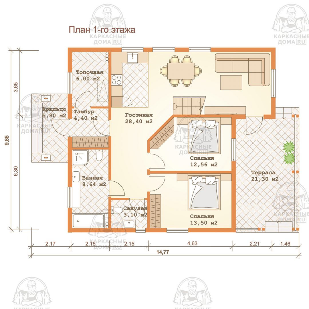 Строительство каркасного дома 15х12 "Айрис" под ключ