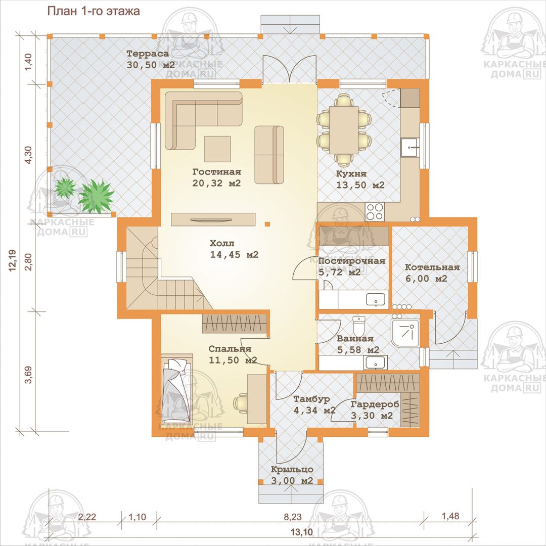 Каркасный дом 12x13 Проект "Гелиотроп"