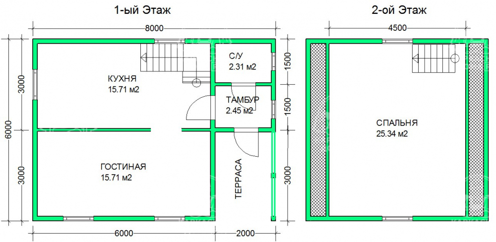 Каркасный дом 7x7.5 Проект "Бриллиант"