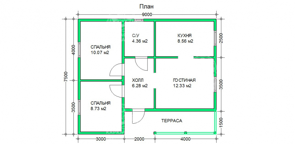 Каркасный дом 9x7.5 Проект "Карнеол"