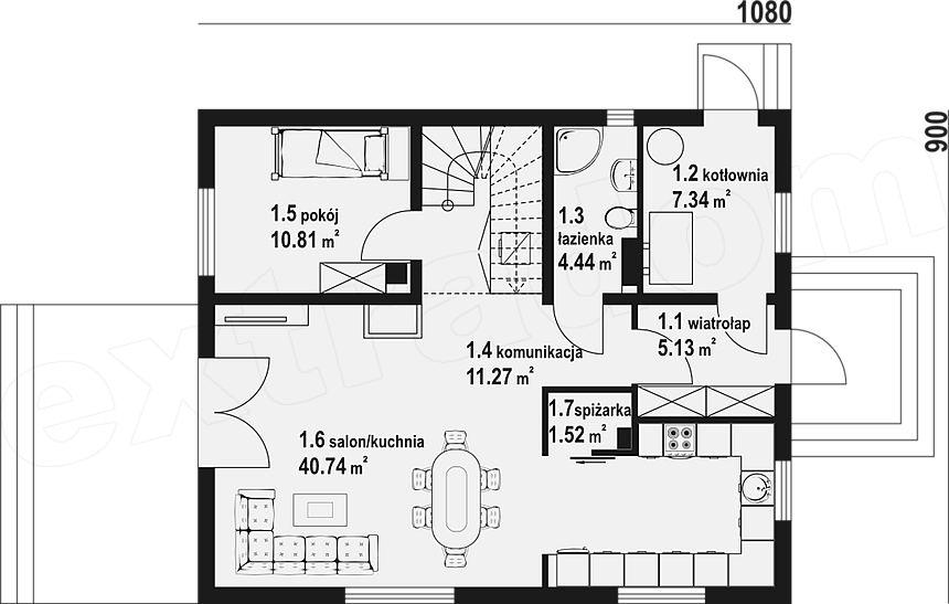 Проект одноэтажного коттеджа "Родные пенаты" из газобетона