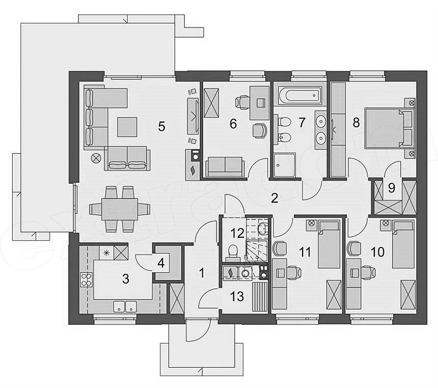 Проект одноэтажного дома с террасой Flat-01-118 м² — Домострой