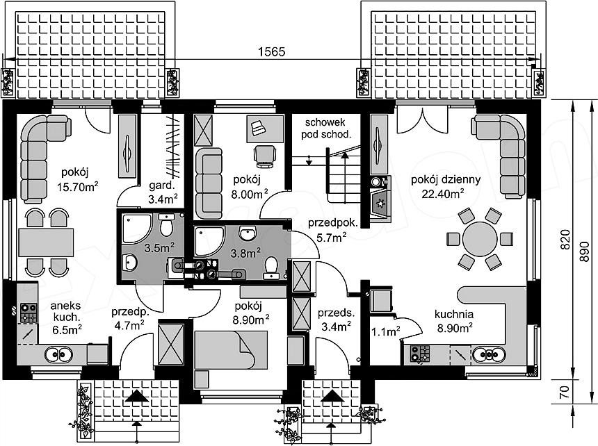 2 спальн. · 1 этаж