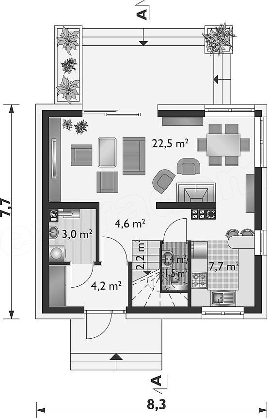 Проект одноэтажного дома "Красная Шапочка" из бруса