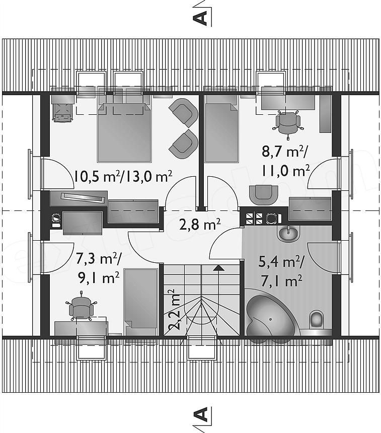 Проект двухэтажного дома "Уголок 9х10" из бруса