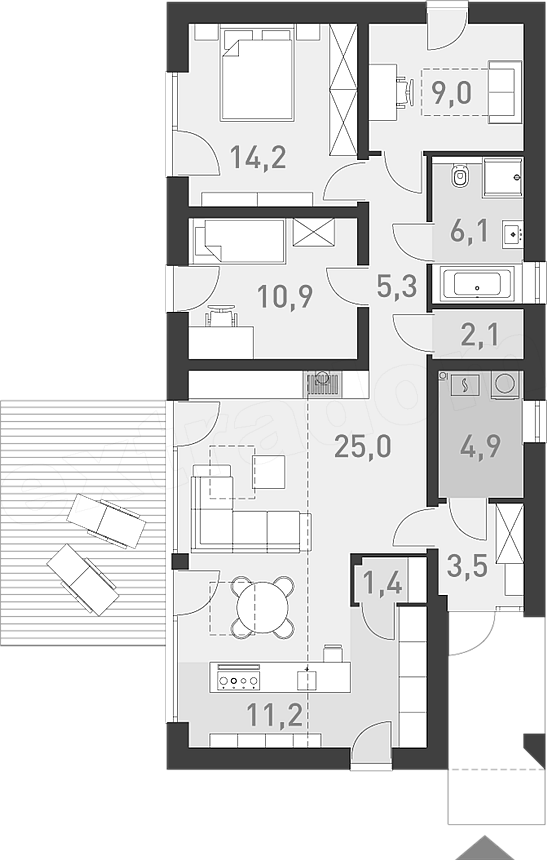 Проект одноэтажного каркасного дома "Сириус"