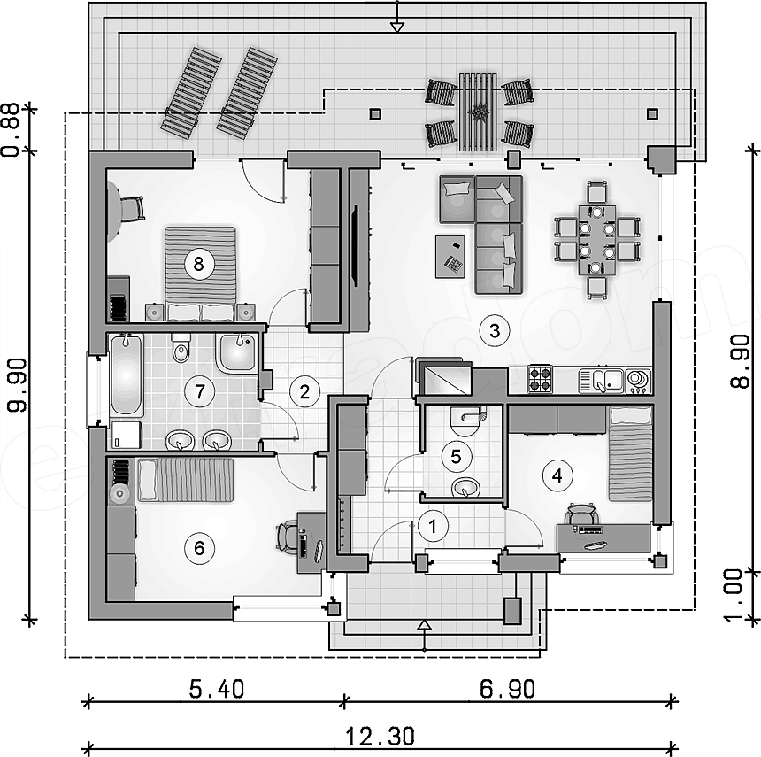 3 спальн. · 1 санузл. · 1 этаж