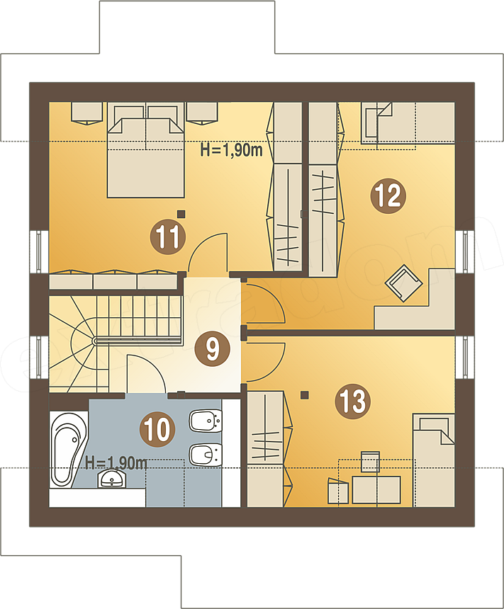 Проект двухэтажного дома "Уголок 9х10" из бруса