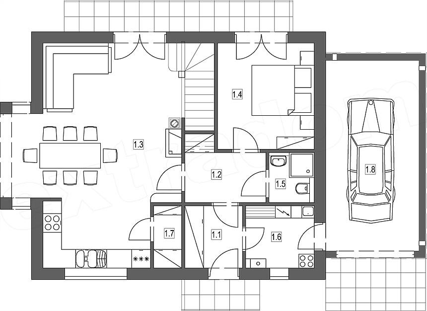 3 спальн. · 1 этаж