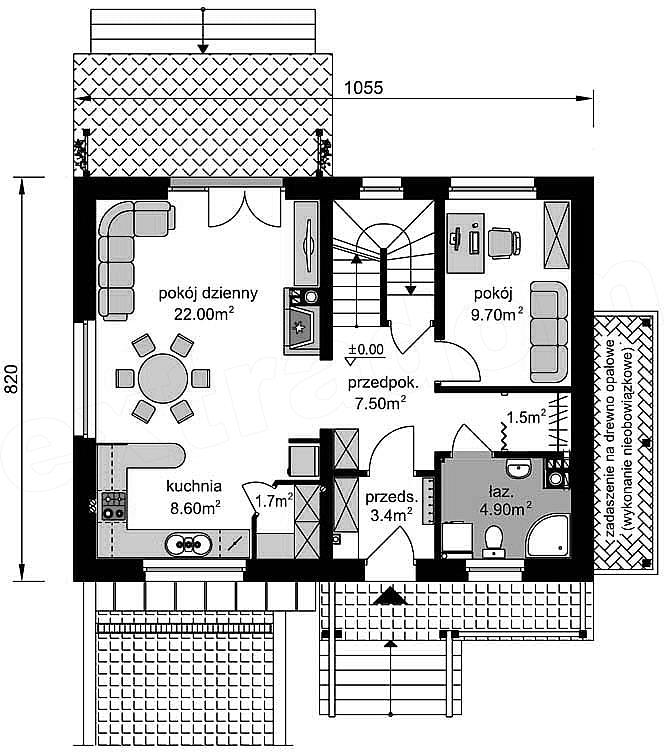 Проект одноэтажного коттеджа "Страдивари" из бруса