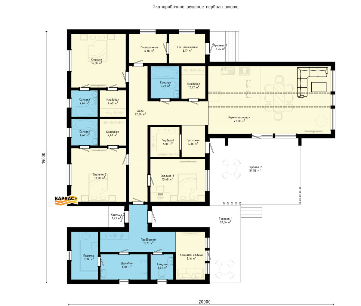 Проект одноэтажного коттеджа "Люкс" из газобетона