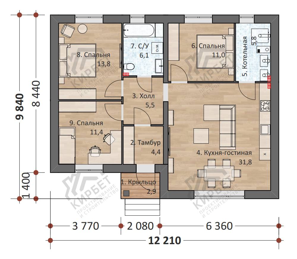 Проект дома из газоблоков 12х10 ГББ-93: цена руб.