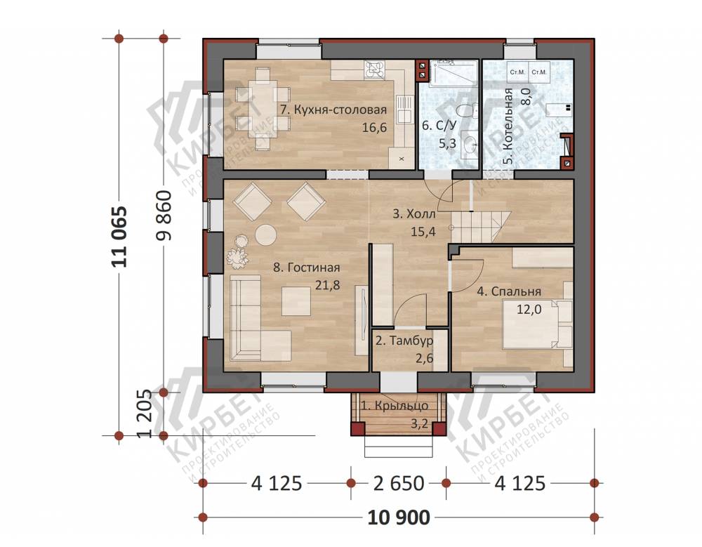 Проект одноэтажного дома "Опалево-М2" из бруса