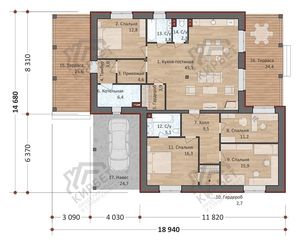 Проект дома из газоблоков 19х15 ГББ-217: цена 9635000 руб.