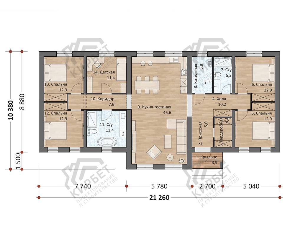 Проект дома из газоблоков 21х10 ГББ-164: цена 10250000 руб.