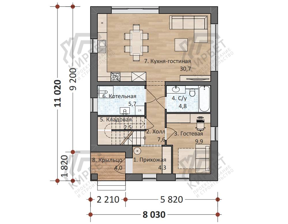 Проект дома из керамоблоков 8х11 ТКБ-140: цена 5984000 руб.