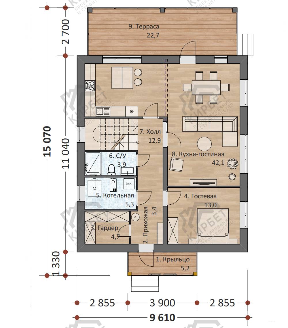Проект дома из керамоблоков 9х12 ТКБ-151: цена 7073000 руб.