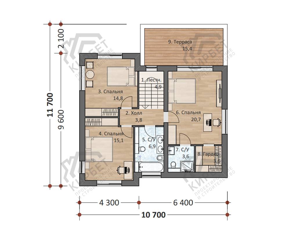 4 спальн. · 4 санузл. · 2 этаж