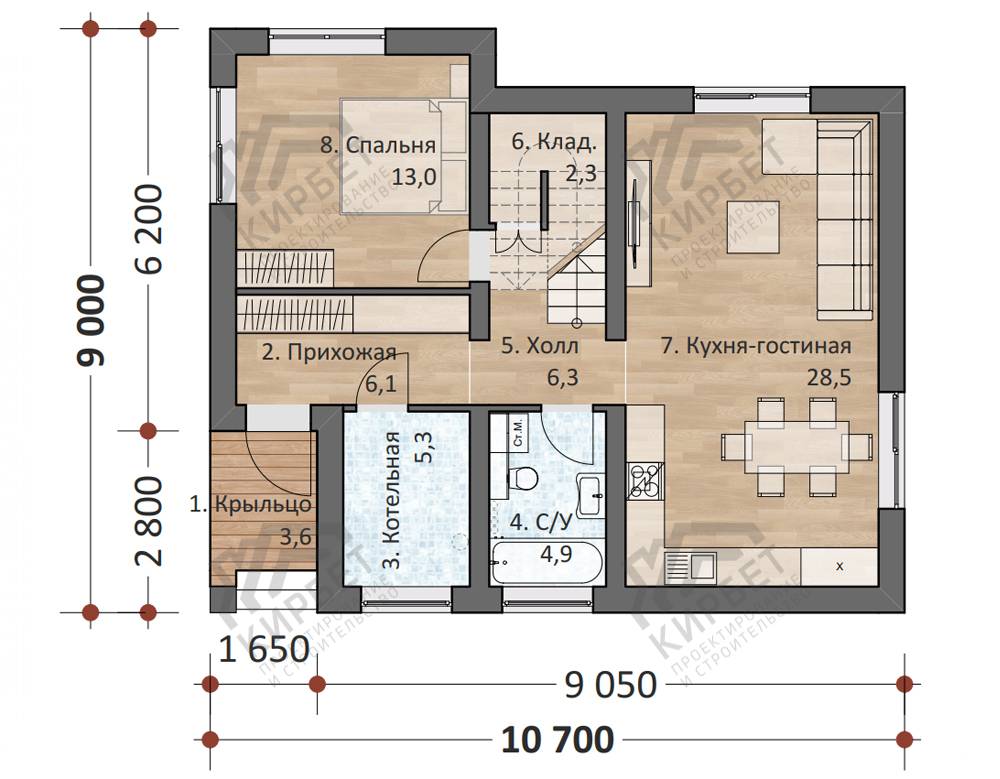 Проект одноэтажного дома "Конаково" из бруса
