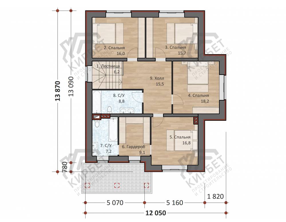 6 спальн. · 3 санузл. · 2 этаж