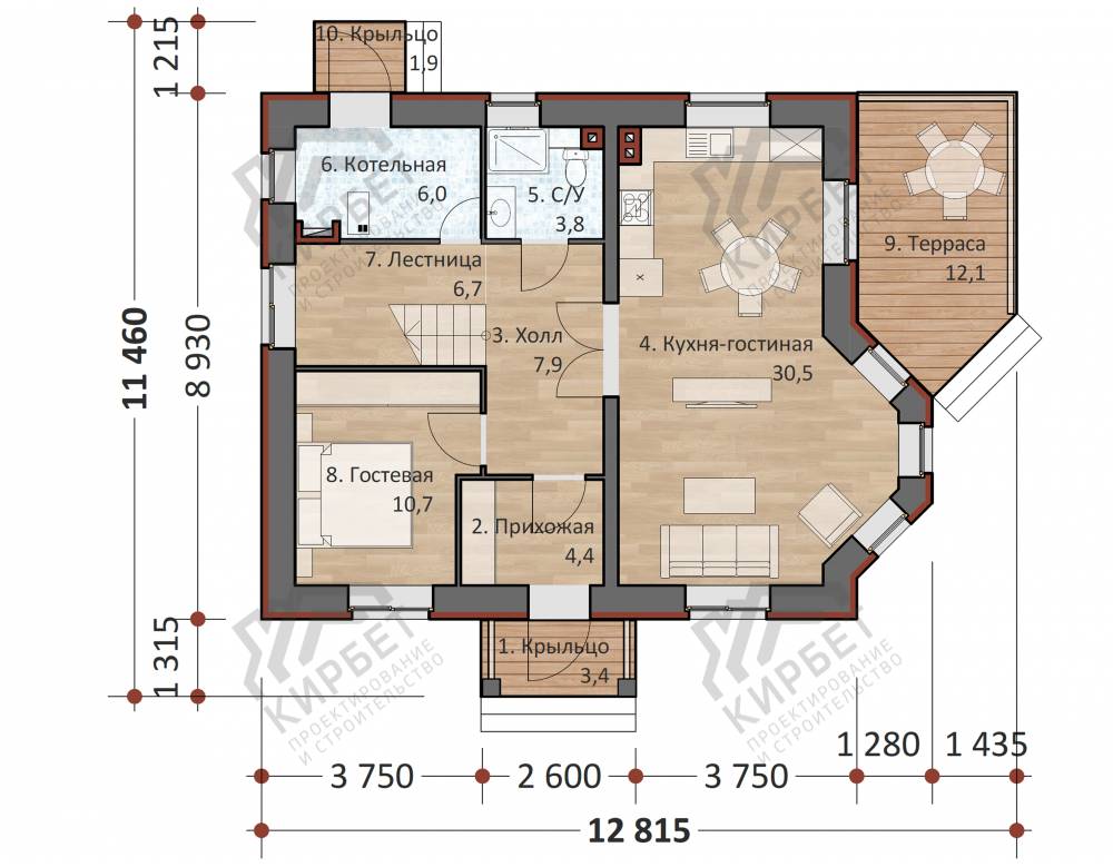 Проект одноэтажного дома "Соренто" из бруса