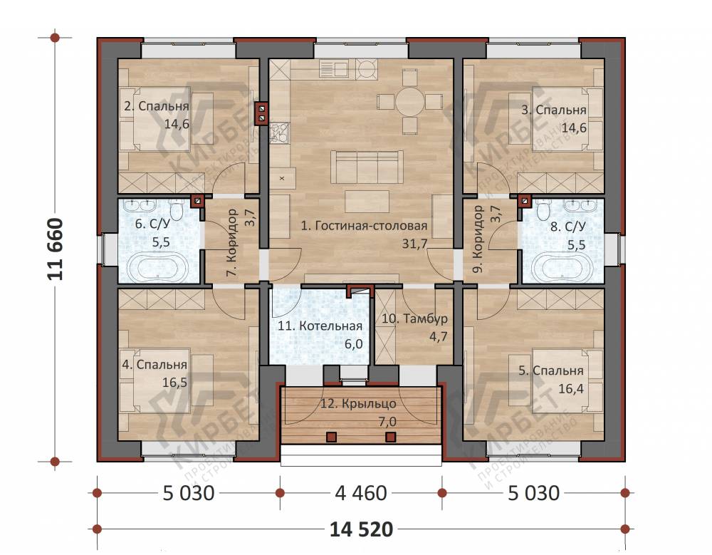 Проект одноэтажного дома "Княжич" из бруса