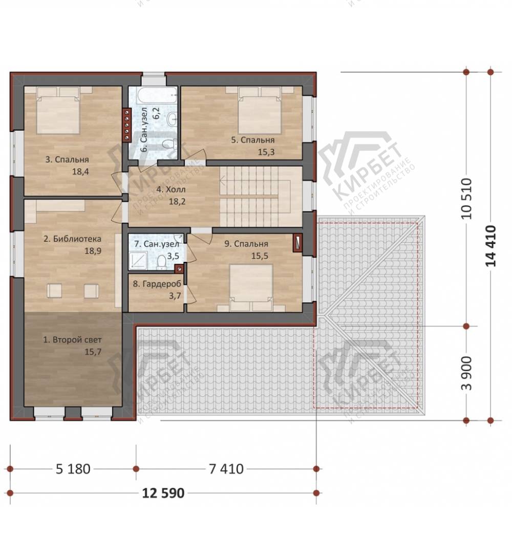 5 спальн. · 4 санузл. · 2 этаж