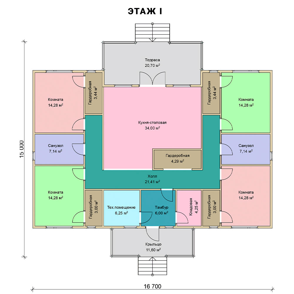 Проект одноэтажного дома "Плато" из бруса