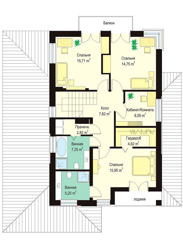 4 спальн. · 3 санузл. · 2 этаж