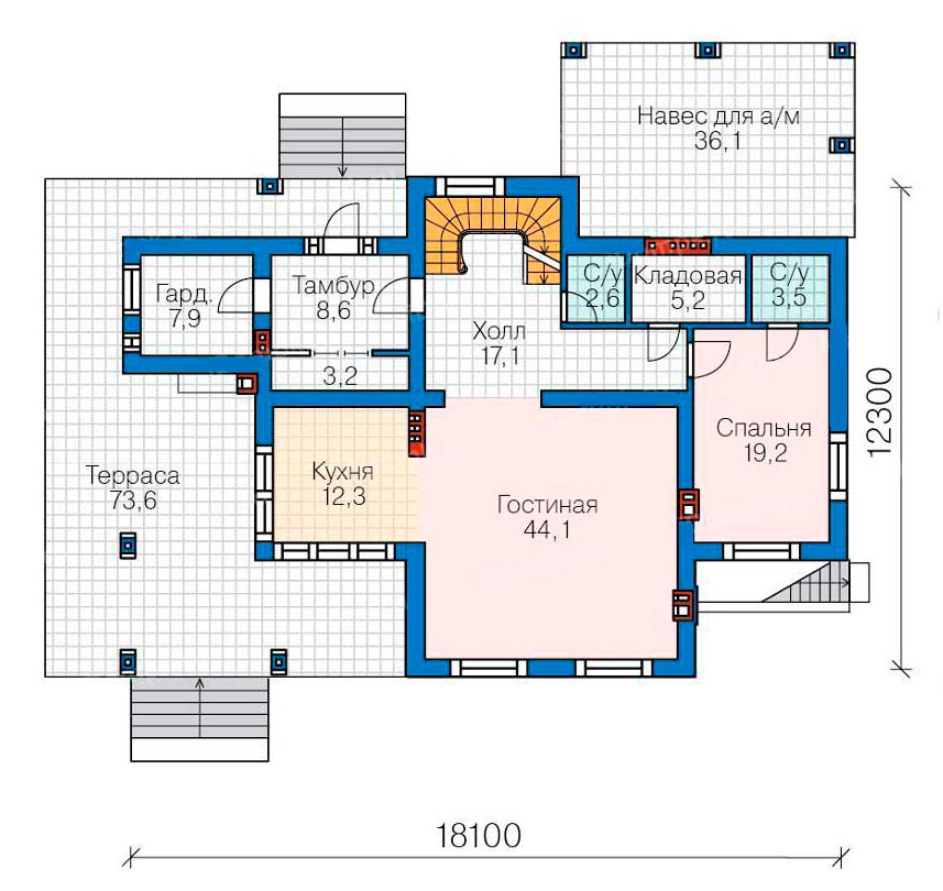 3 спальн. · 1 этаж