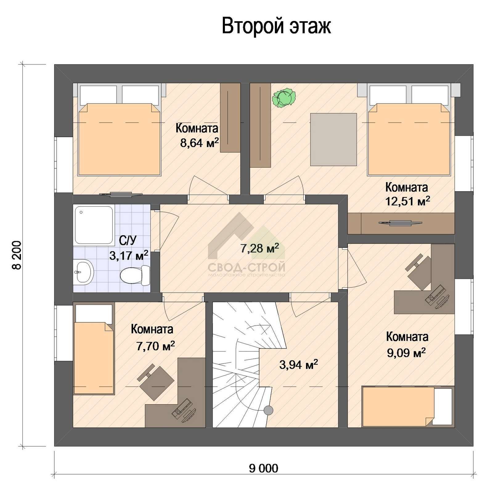 2 спальн. · 2 этаж