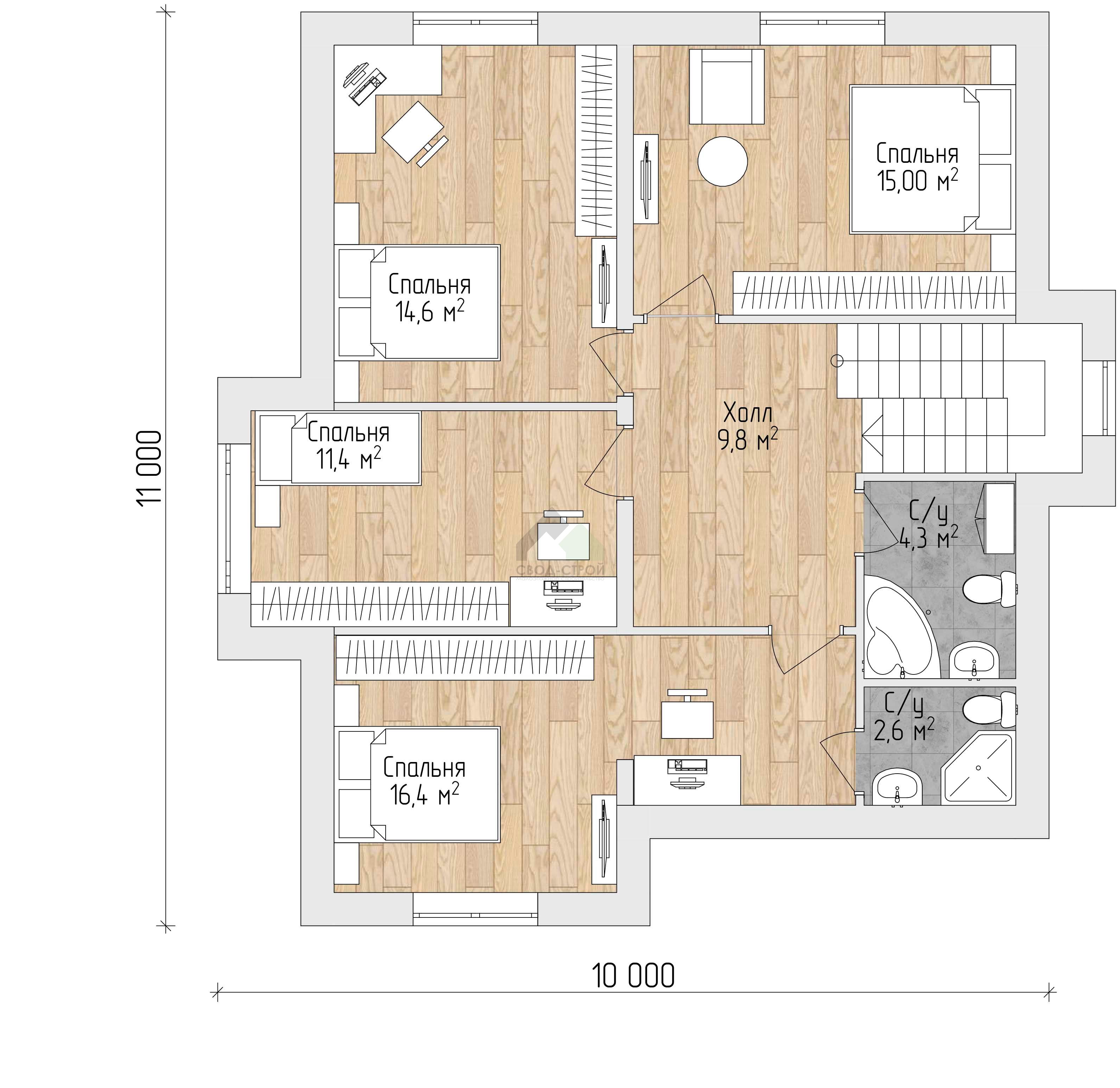 4 спальн. · 2 этаж