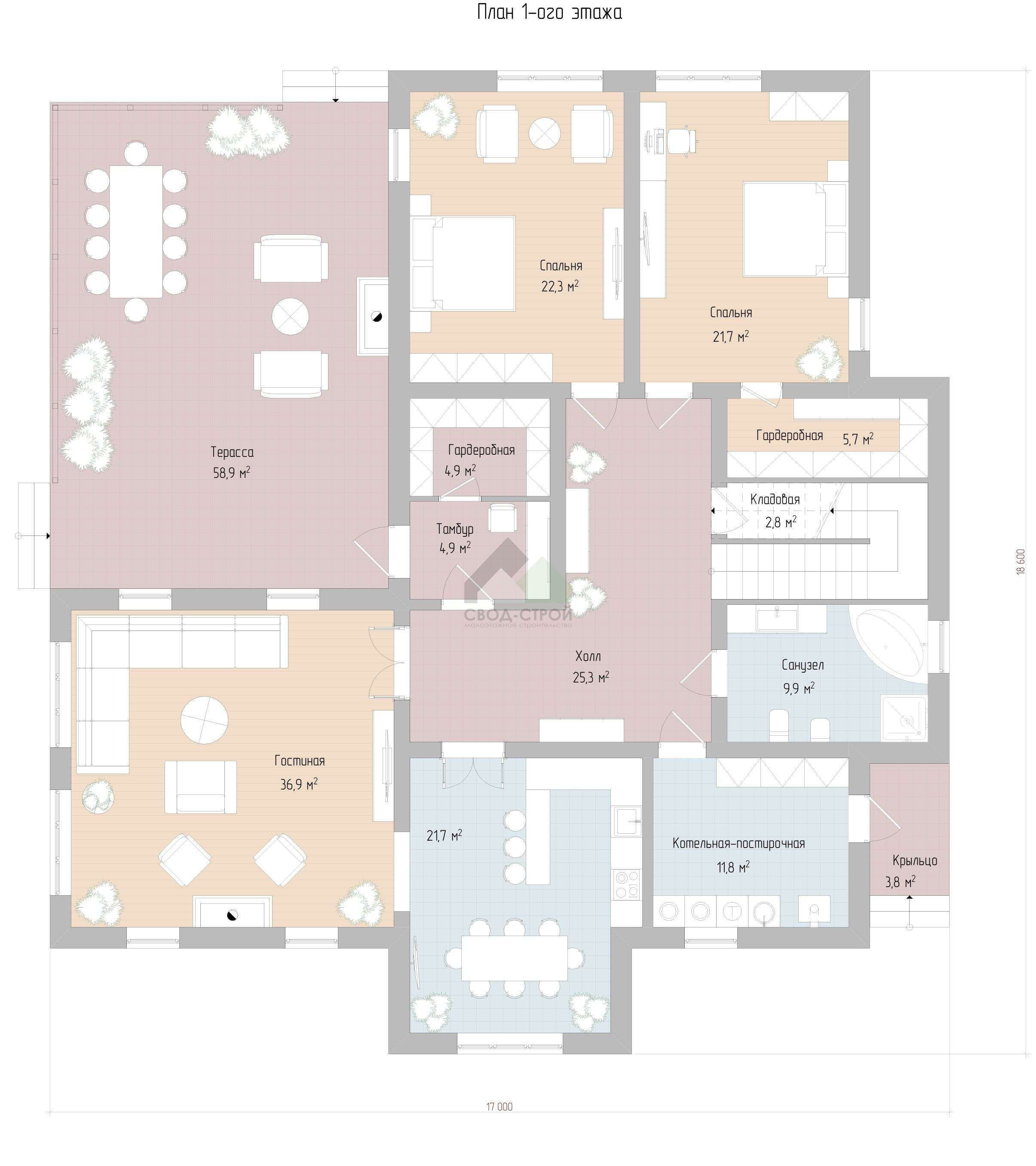 Дом из газобетонных блоков С-421 ГБ «Онегино»