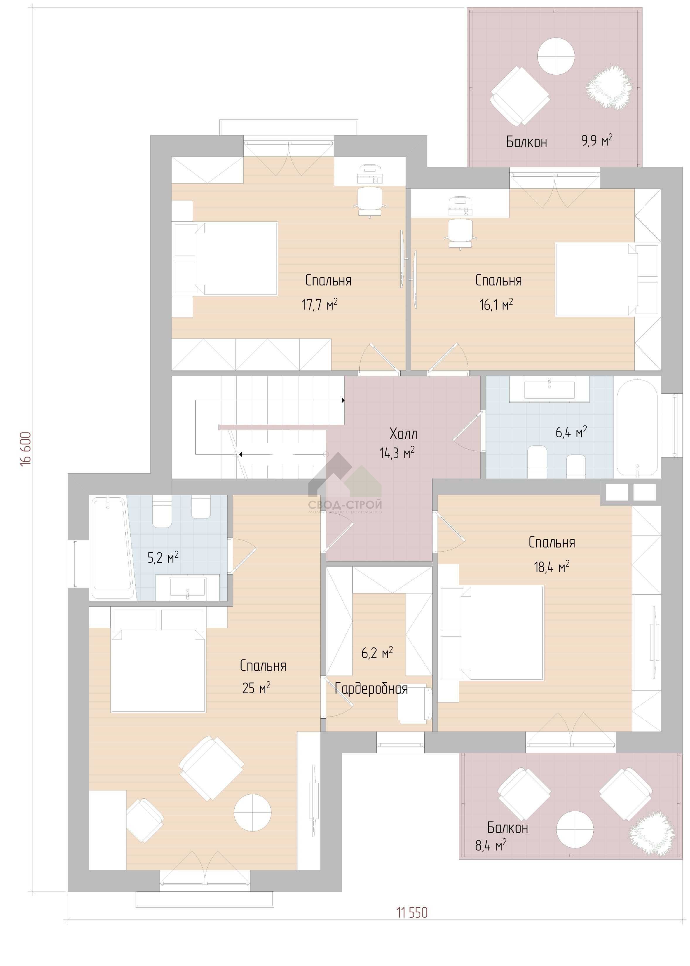 Проект дома из газоблоков 18х16 ГББ-312: цена 12147000 руб.