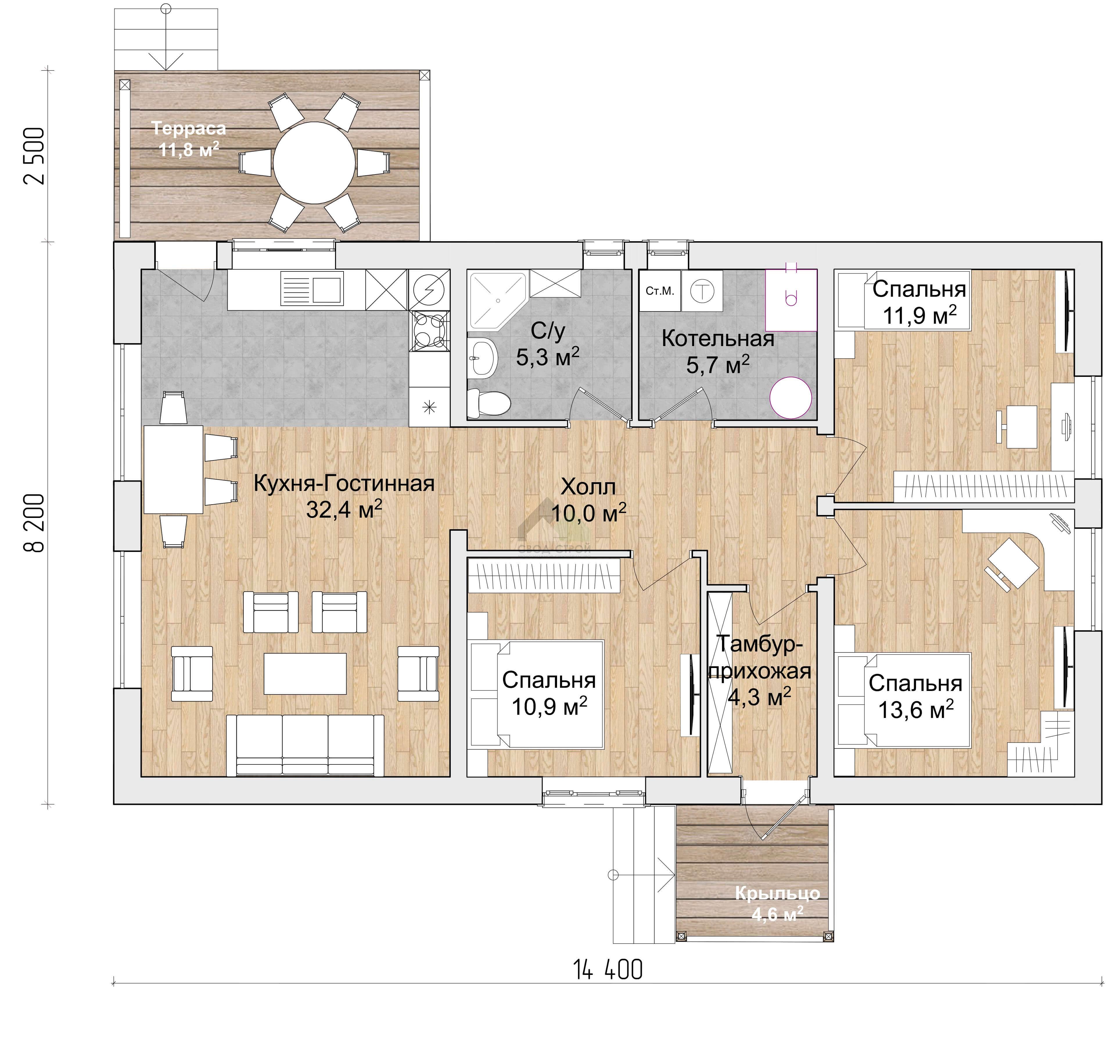 Проект одноэтажного коттеджа "Финский" из газобетона