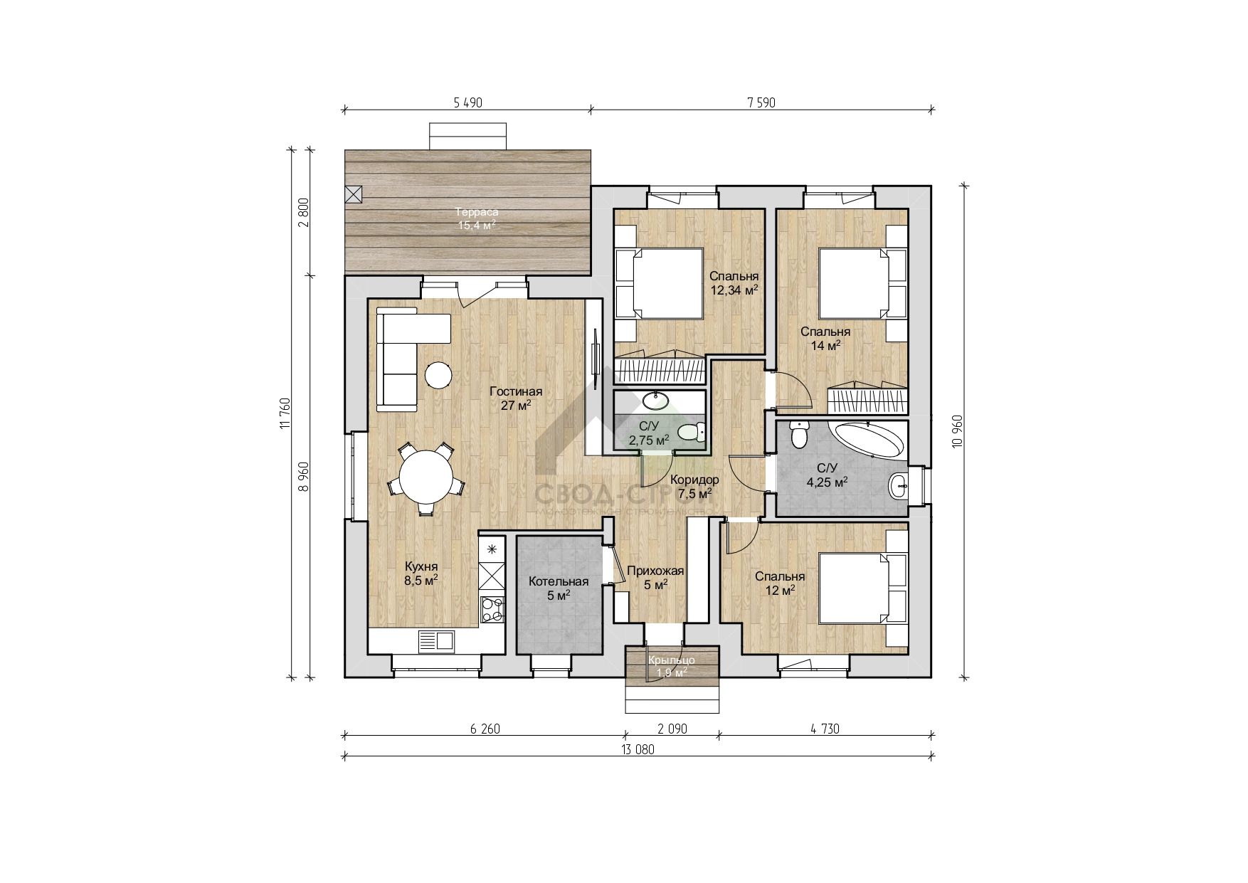 Дом по проекту «ЗС 968-21» - Золотое Сечение