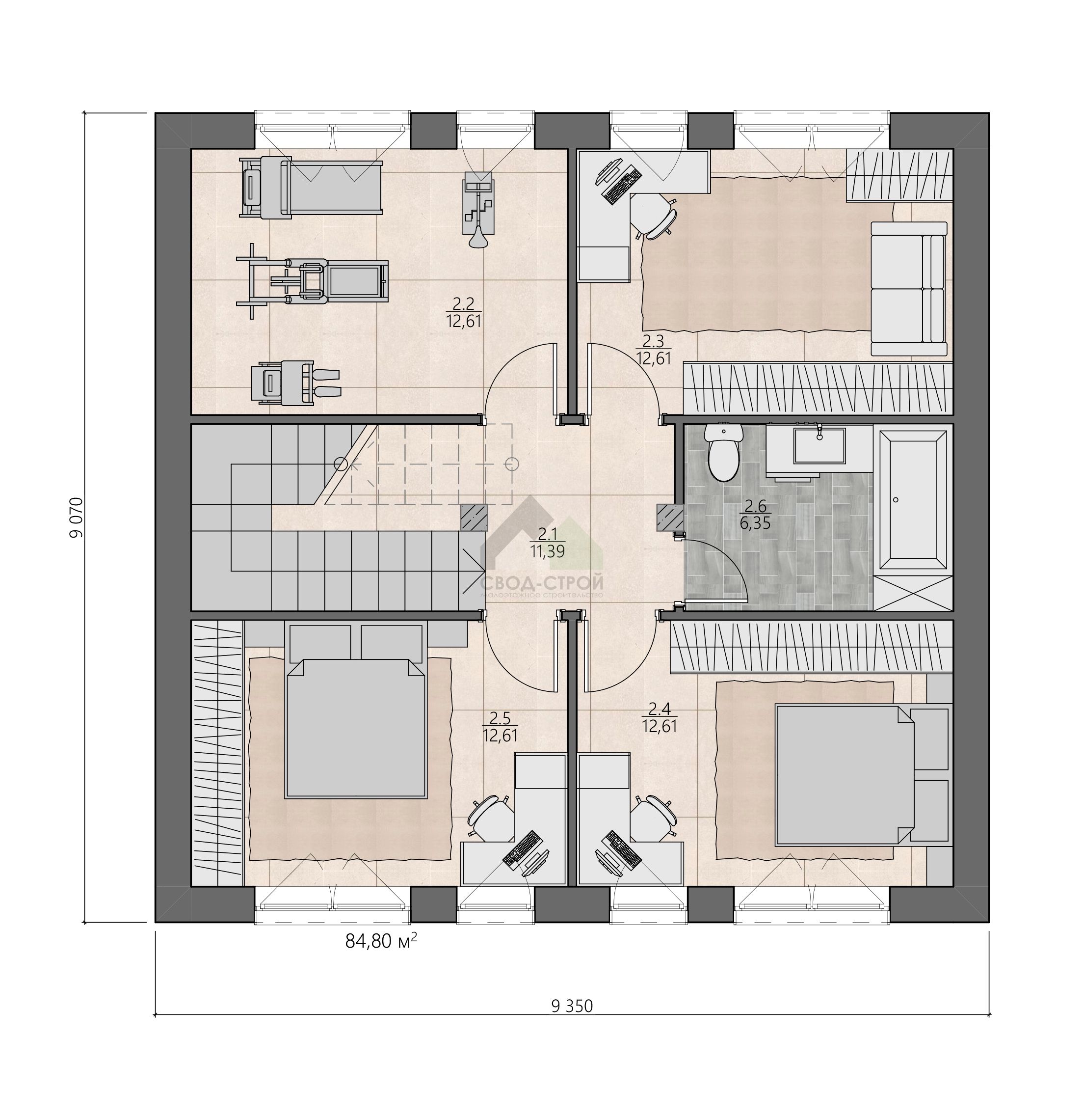 3 спальн. · 2 санузл. · 2 этаж