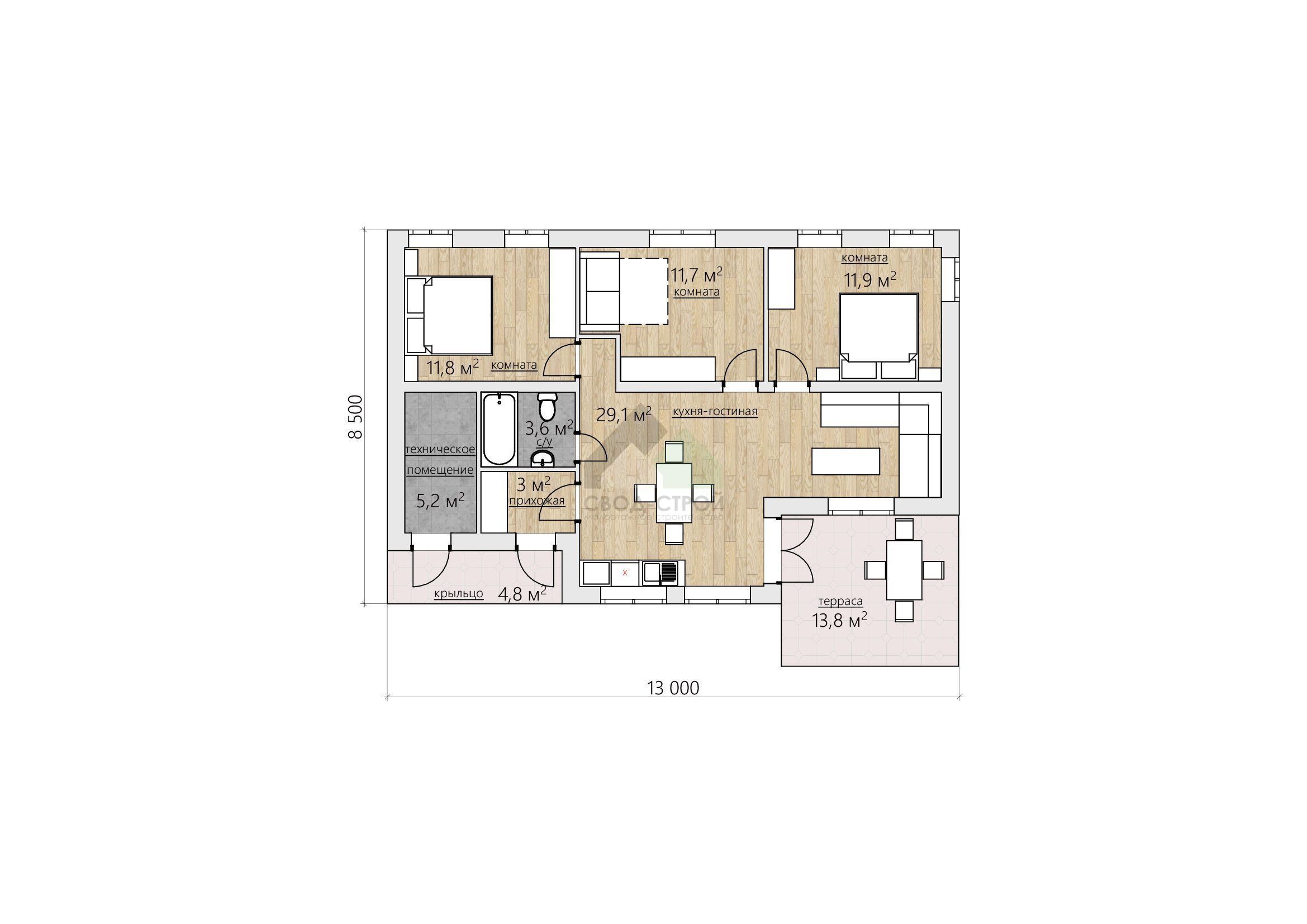 3 спальн. · 1 этаж