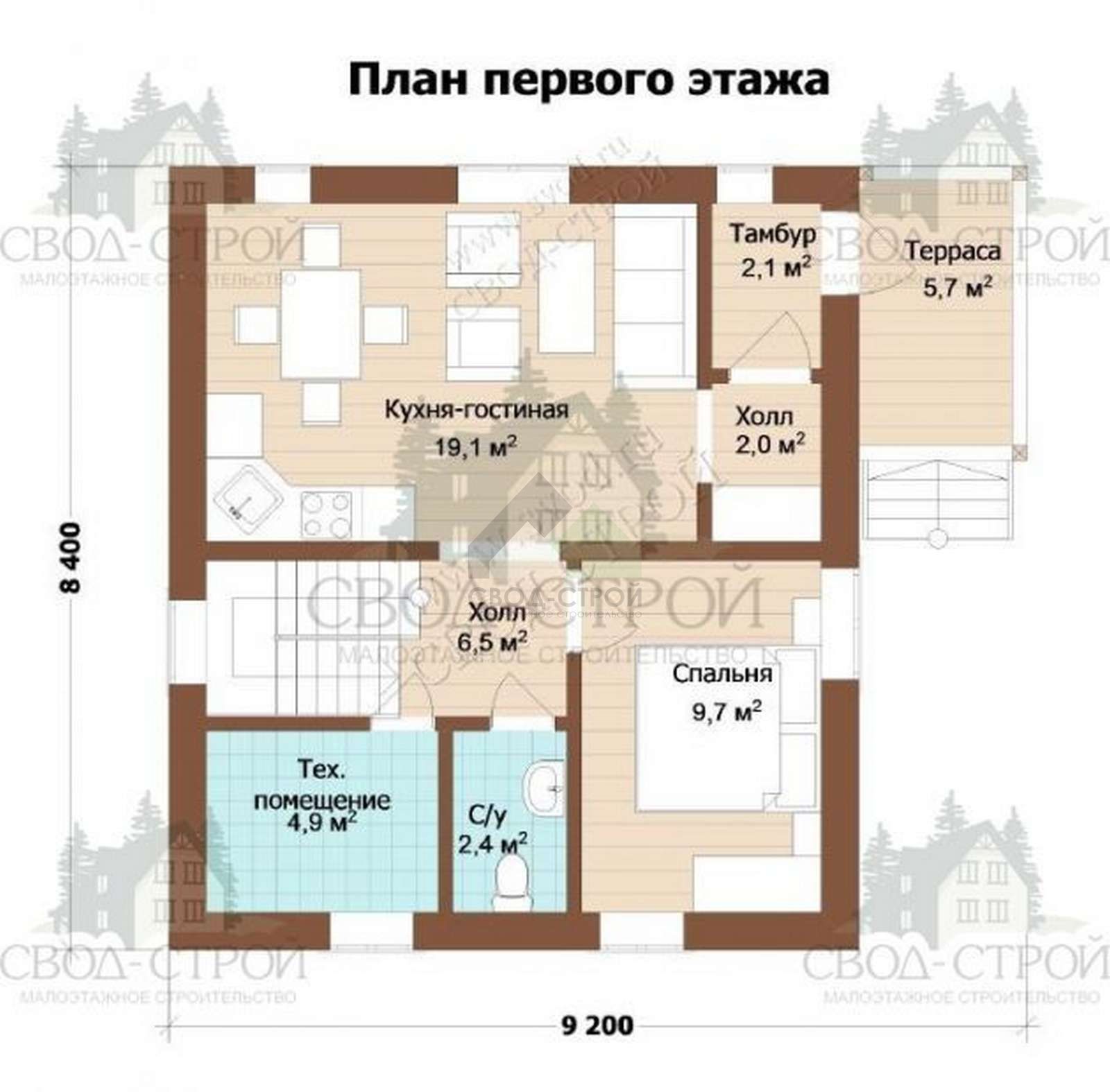 Проект одноэтажного каркасного дома "Княжич ТН1"