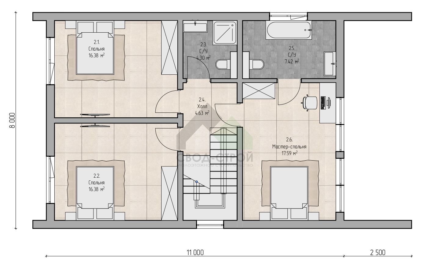 Проект двухэтажного каркасного дома Вилла 2 M под ключ от компании БАКО
