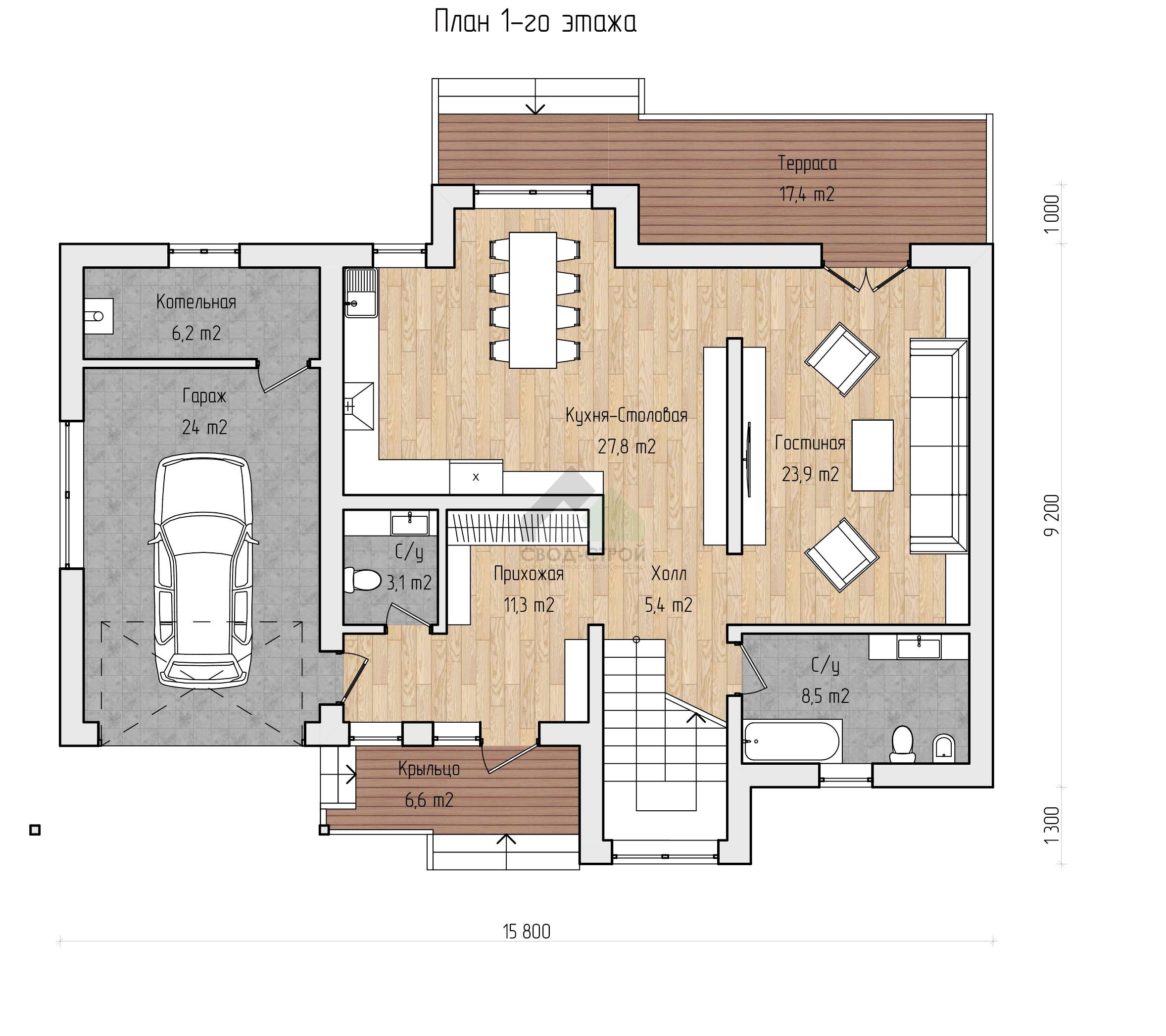 Дом из газобетонных блоков С-358 ГБ «Арфа»