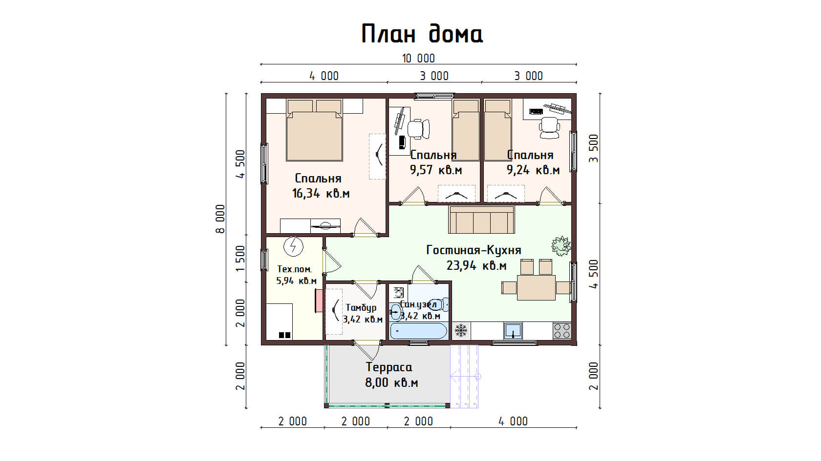 3 спальн. · 1 санузл. · 1 этаж
